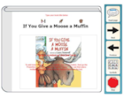 A symbolated talking book with text on the top of the pages and picture on the bottom.
